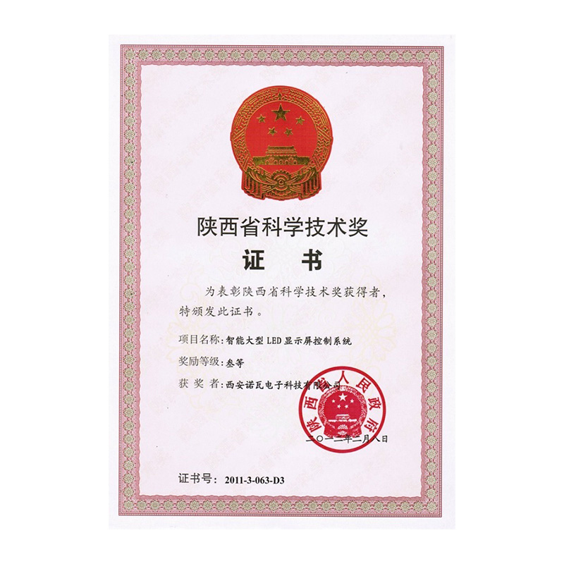 諾瓦星云“智能大型LED顯示屏控制系統”喜獲“西安市科技進步獎一等獎”